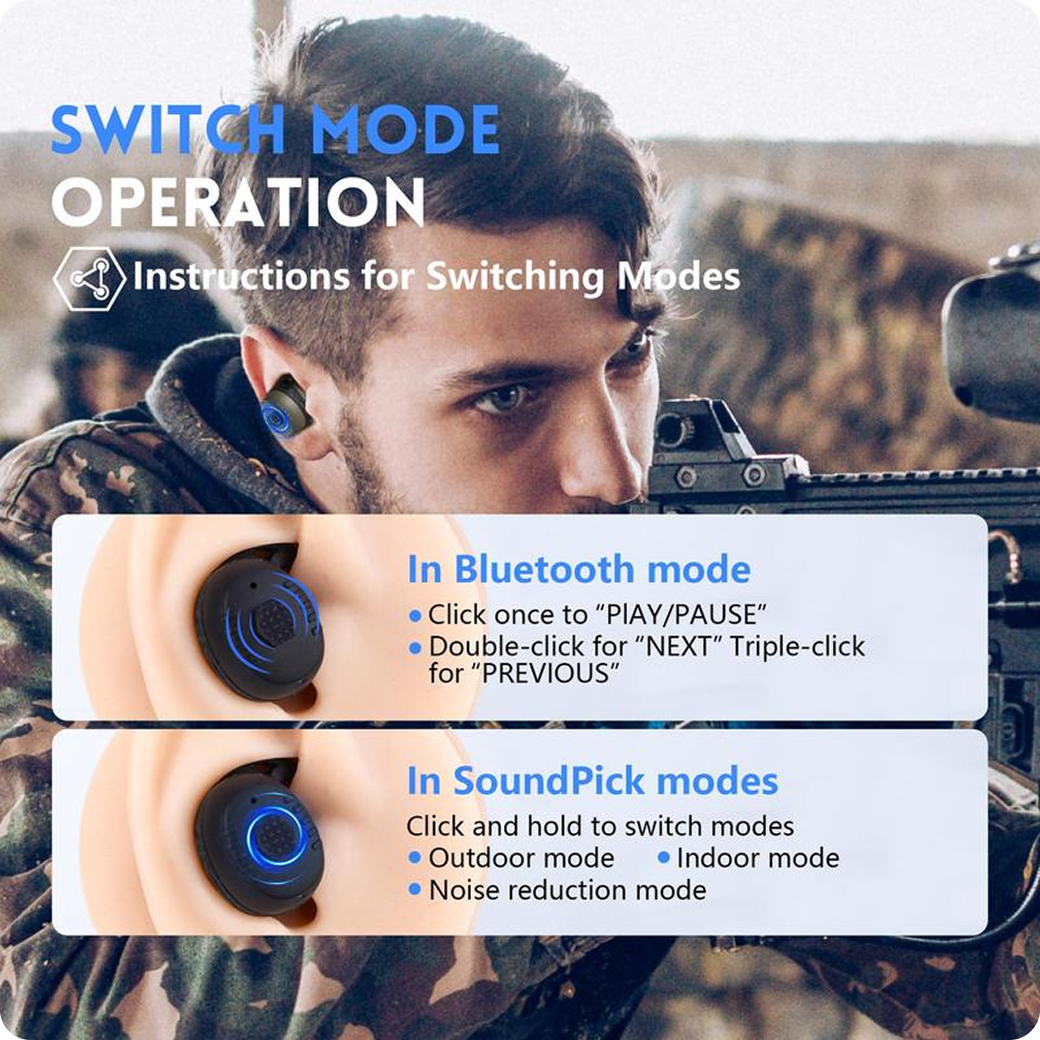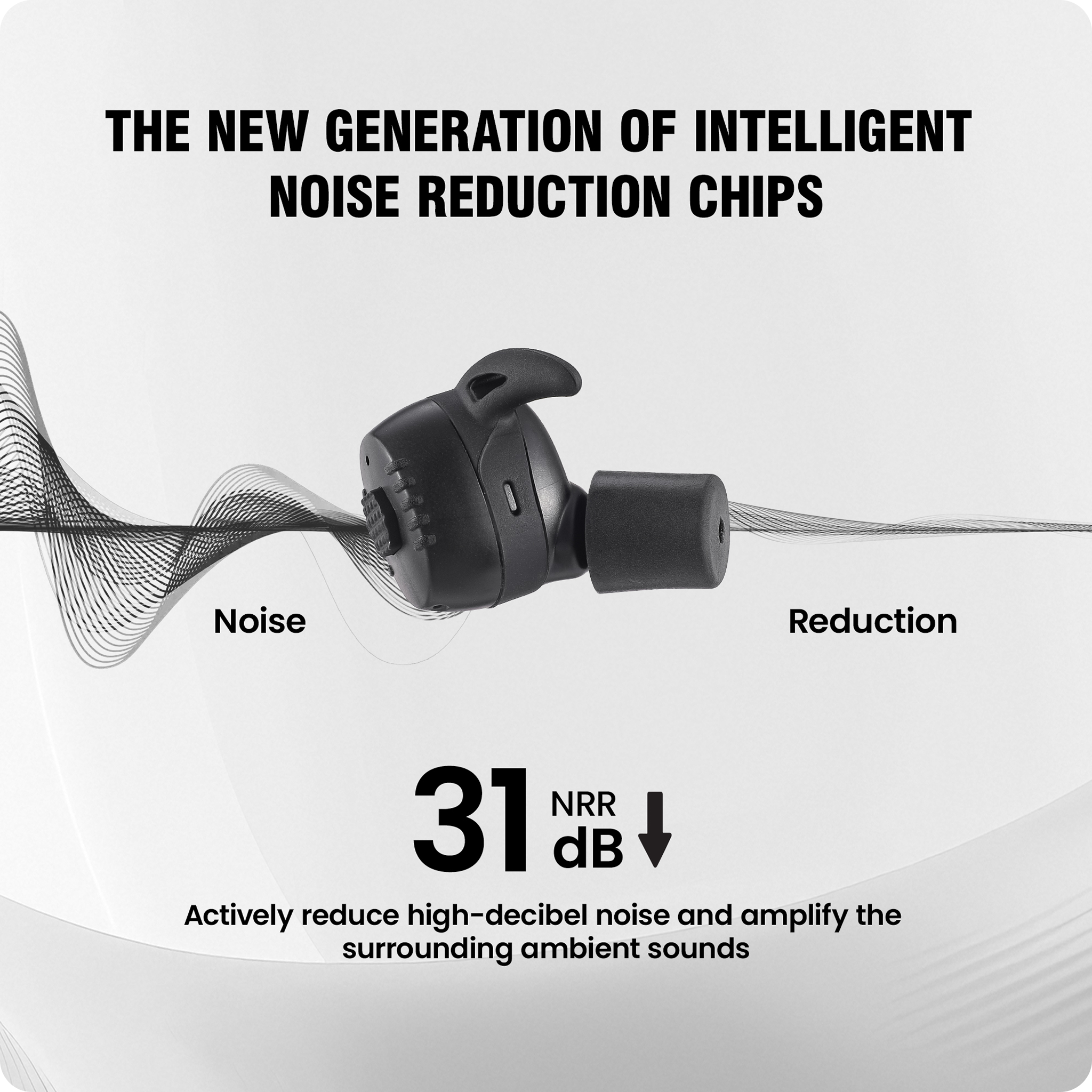 The earbuds use intelligent chips that detect harmful sounds above 82dB and cut them in just 0.01 seconds—faster than a gunshot can damage your hearing. Meanwhile, low-level ambient sounds like footsteps and voices pass through clearly.