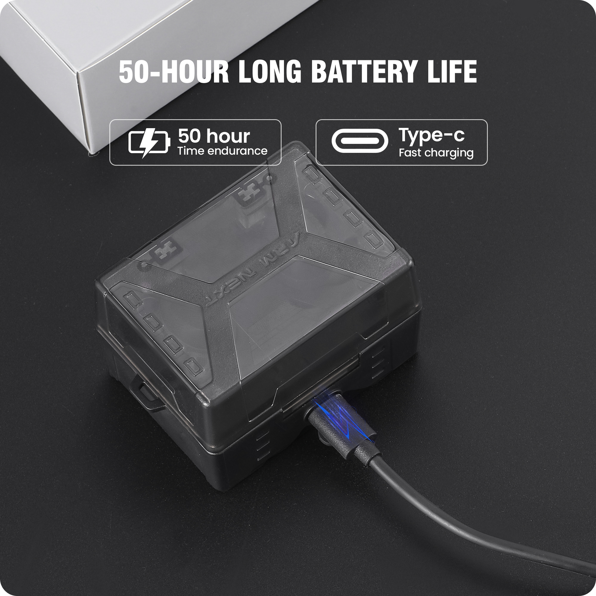 Up to 50 hours total with the charging case. The earbuds get about 8 hours per charge, and the rugged case holds multiple recharges. USB-C fast charging gets you back in the field quickly.