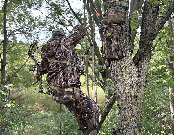 Best investment I've made for bowhunting. Climbed into my stand without fumbling with a bow rope. Everything stays organized and quiet. The weight distribution is incredible even on long hikes into public land.