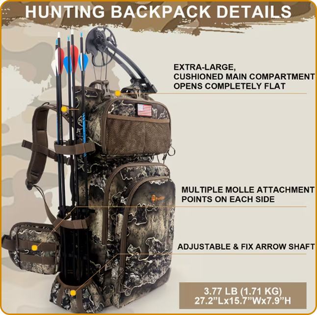 Finally, a pack designed by someone who actually bowhunts. My Mathews fits perfectly inside, quiver stays secure, and I have room for all my gear. Game changer for saddle hunting.