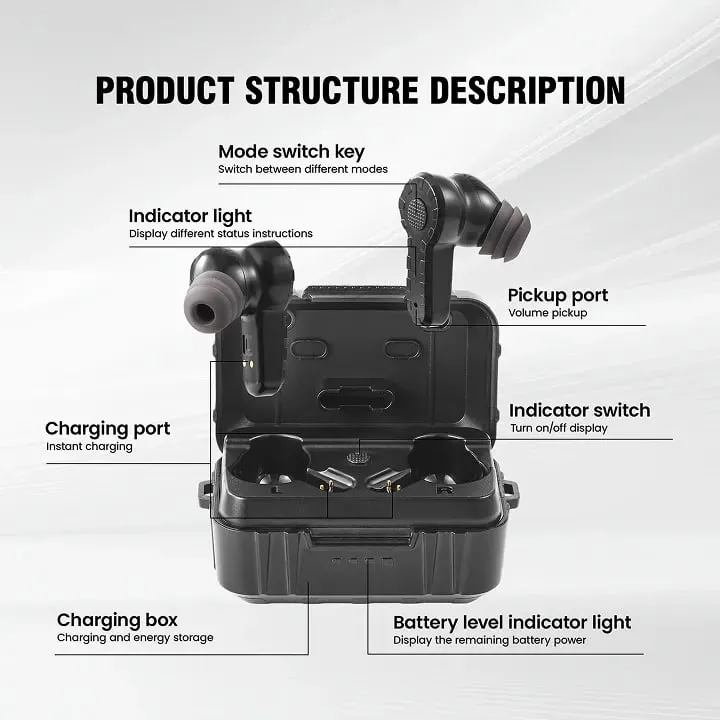 The earbuds use intelligent chips that detect harmful sounds above 82dB and cut them in just 0.01 seconds—faster than a gunshot can damage your hearing. Meanwhile, low-level ambient sounds like footsteps and voices pass through clearly.