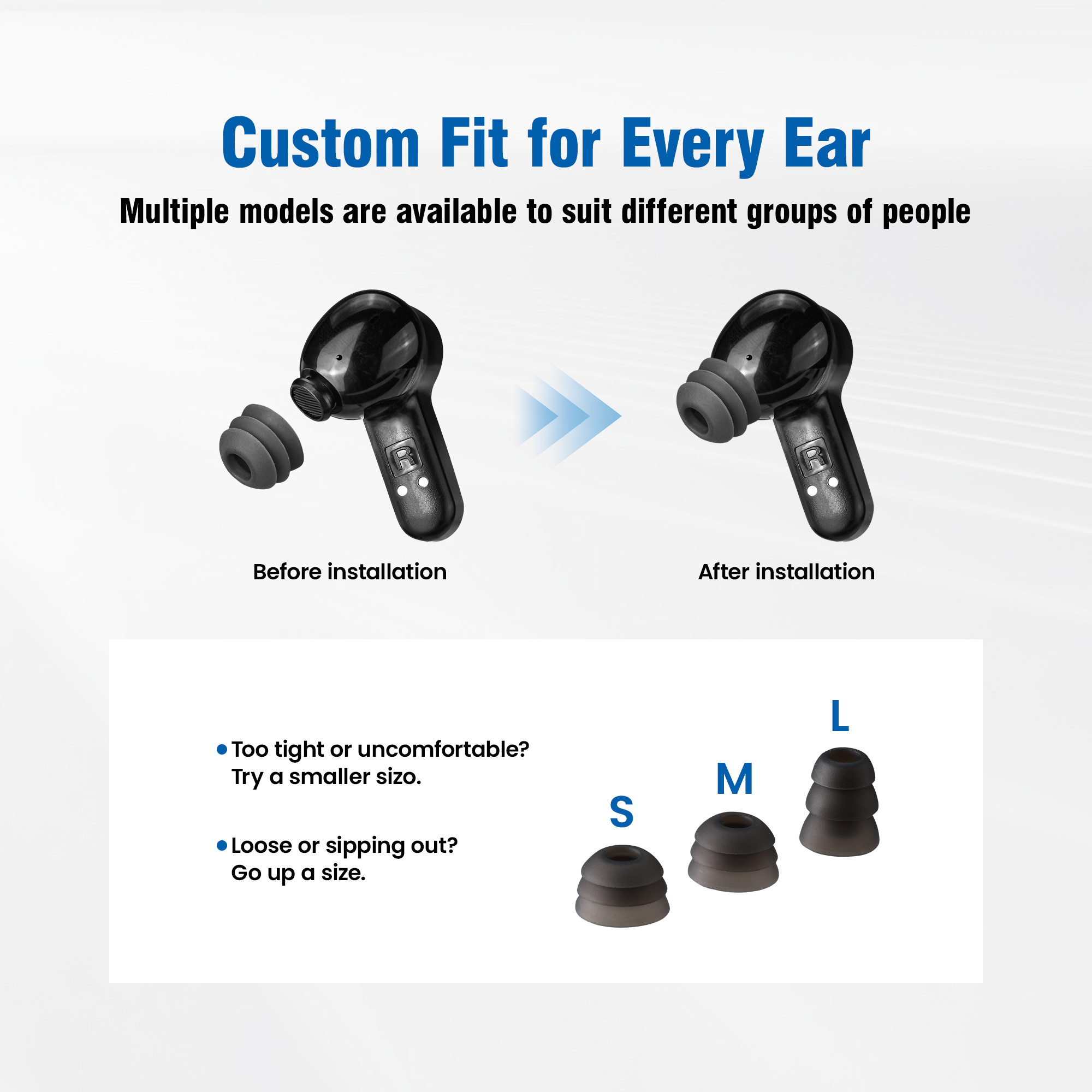 Choose from three ear tip sizes (S/M/L) for a secure, all-day seal that won't budge.